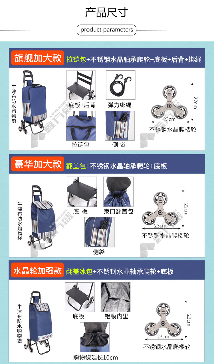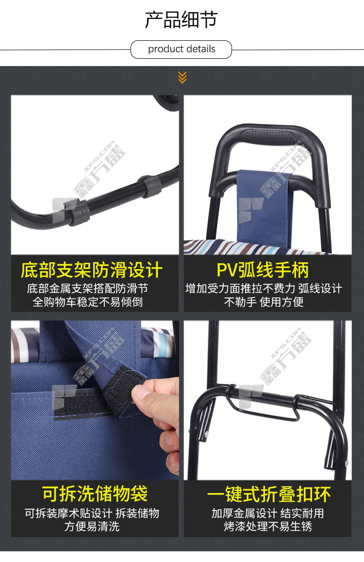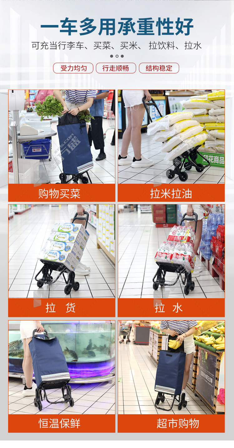 商品名称: 赫思迪格 JG-453 购物车 基础款 静音轮 藏青 JG-453