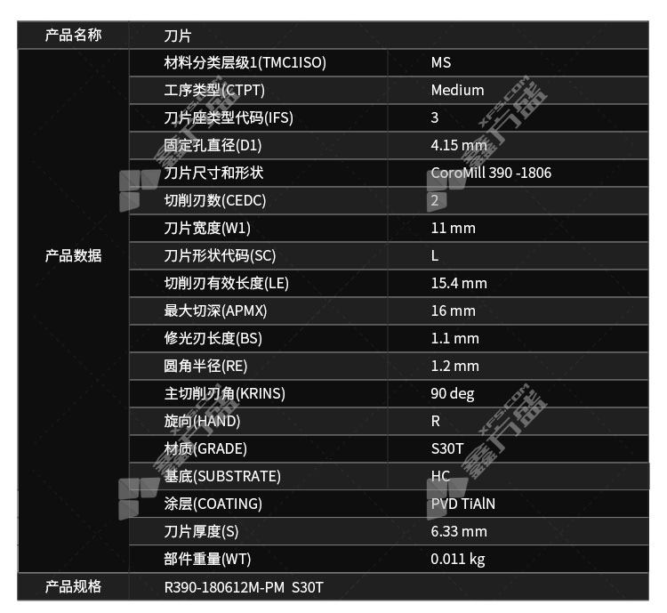 • 山特维克 刀片 R390-180612M-PM  S30T