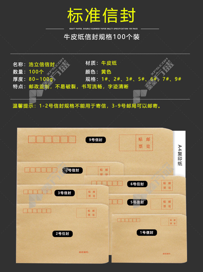 商品名称: 浩立信 1518 3号牛皮纸信封 175*120mm 米黄色 100个/包 1518