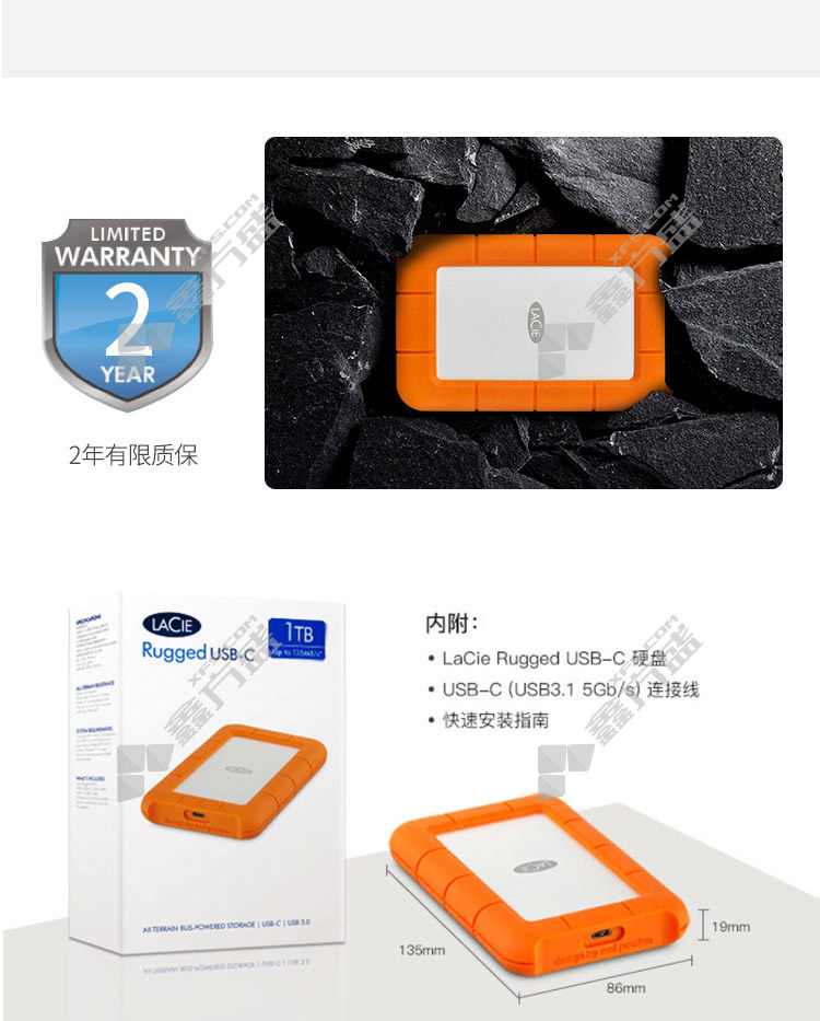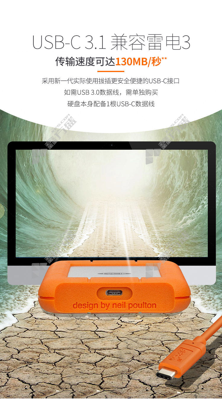 商品名称: 希捷 Rugged 2.5英寸 便携三防通用移动硬盘 4T 白橙色 Type-CUSB3.1 STFR4000800