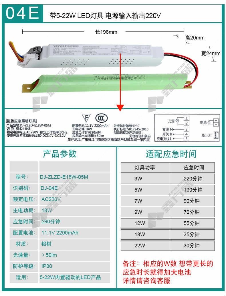 商品名称: 东君电源DJ-04E 18W 恒流灯管 配件