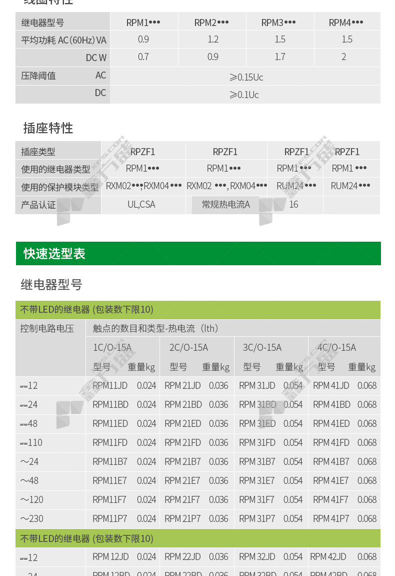 商品规格:RPM22BD/24VDC/15A/2NO+2NC