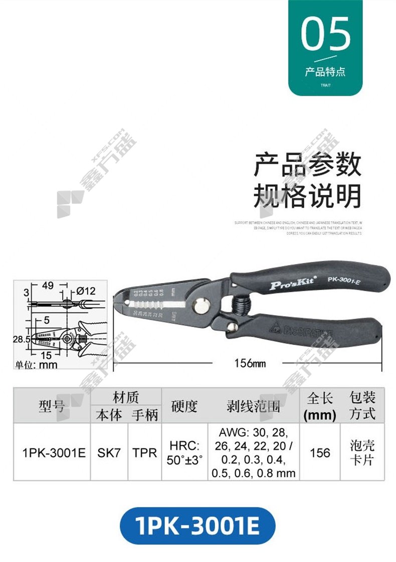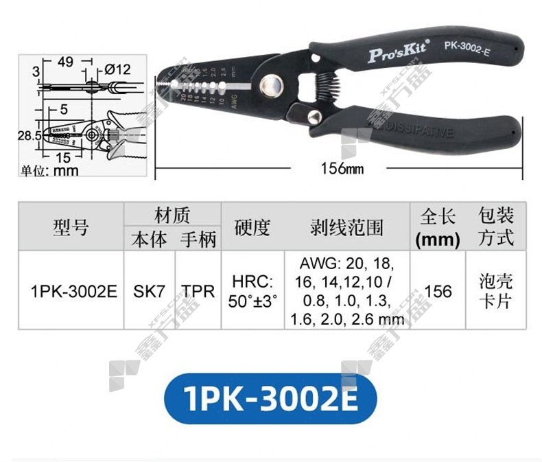 商品名称: 宝工防静电电子线剥皮钳 1PK-3002E 0.8~2.6mm