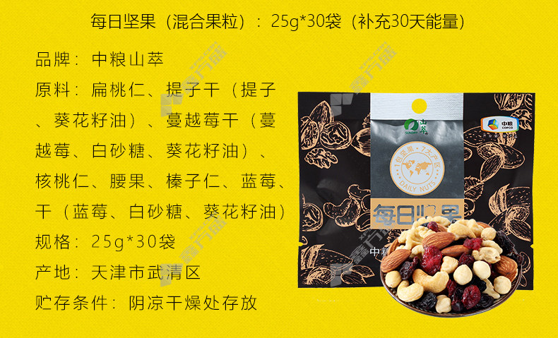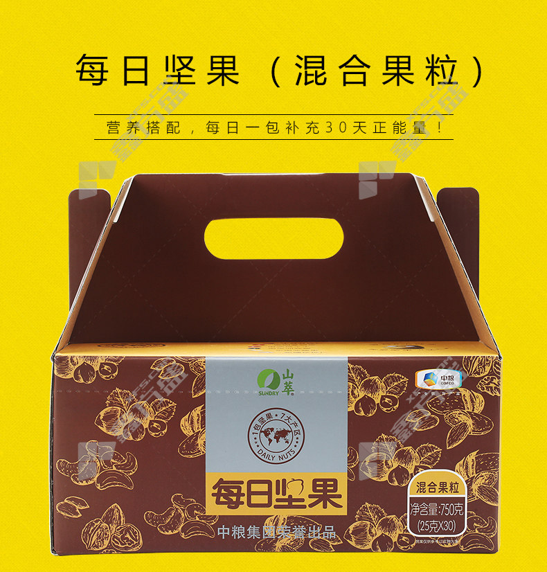 商品名称: 中粮山萃每日坚果礼盒 净含量:750g 内配:25g*30袋