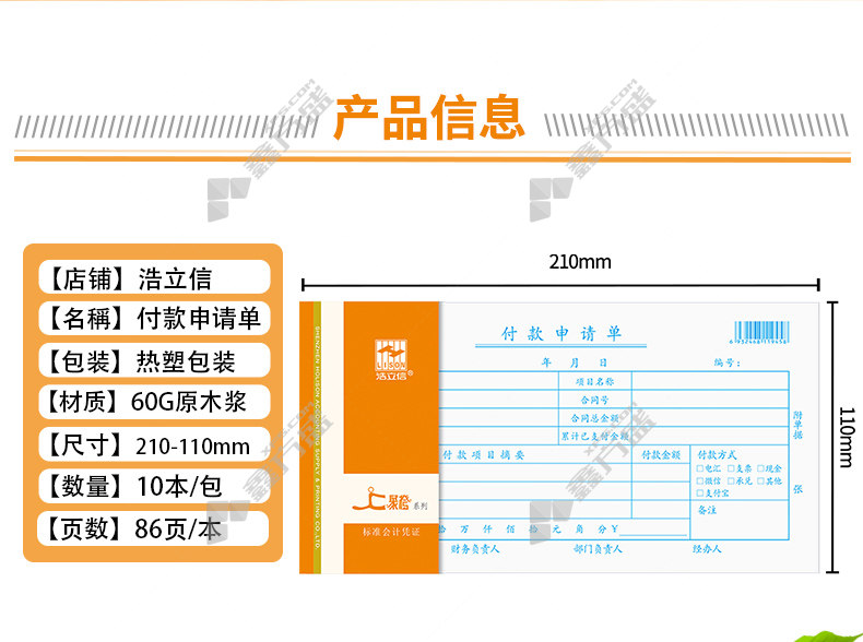 商品名称: 浩立信 聚橙系列 35K-付款申请单(1945) 86页 210*110mm 1945