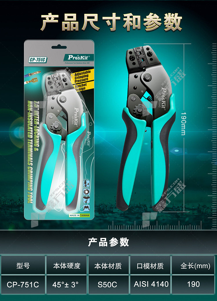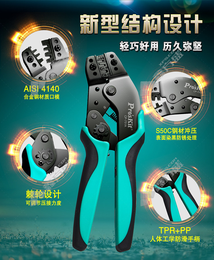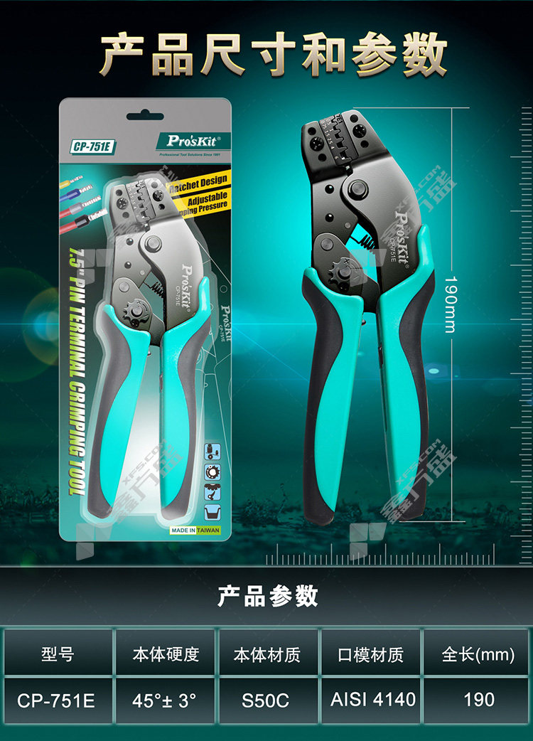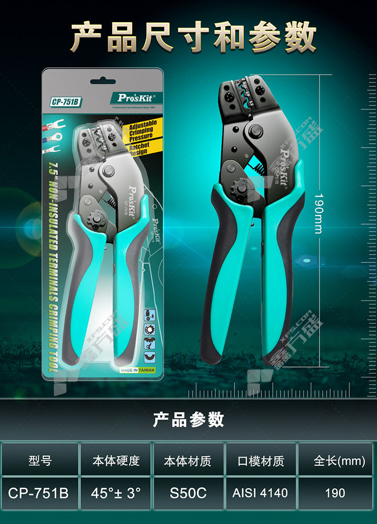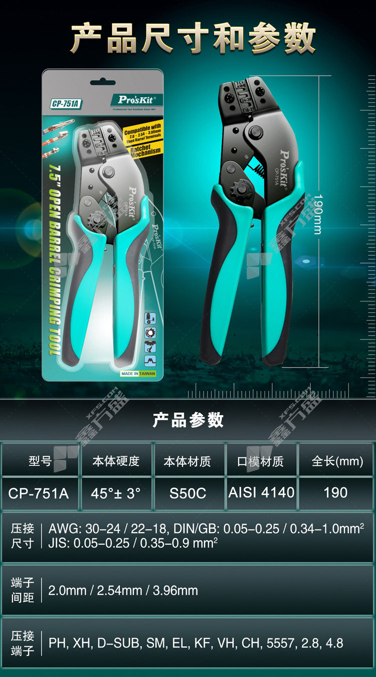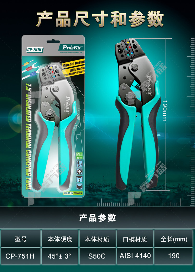 商品名称: 宝工 端子棘轮压着钳 CP-751E