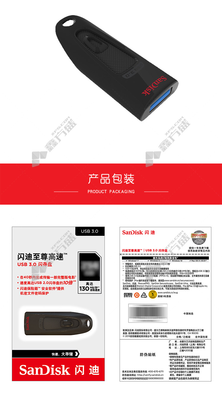商品名称: 闪迪CZ48 USB3.0 U盘 32GB 黑色 CZ48