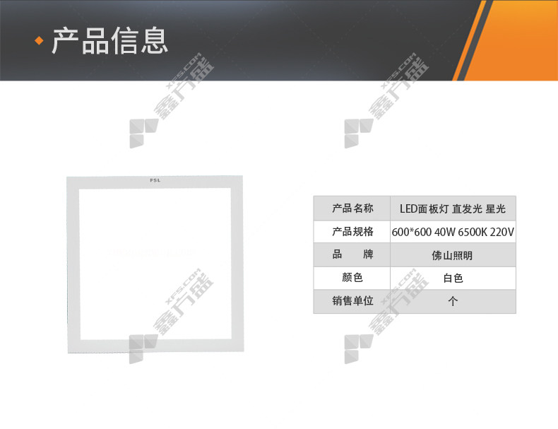 商品名称: 佛山照明 LED面板灯 直发光 星光 40W 6500K 220V 300*1200 V型 白色