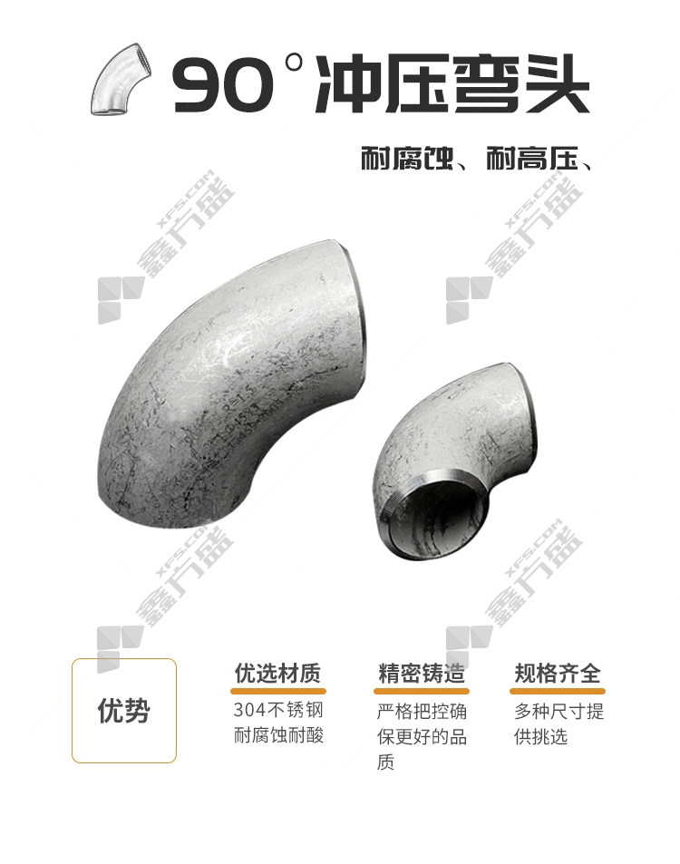 商品名称: 圣天 304不锈钢对焊90°弯头 φ219*12mm-1.5D