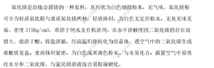 商品名称: 太仕氧化镁 YHM90;含量90%