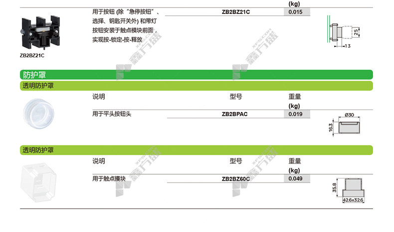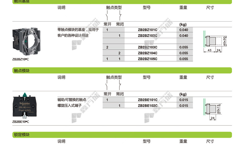 • 施耐德 XB2B 按钮开关触点模块 ZB2BE102C