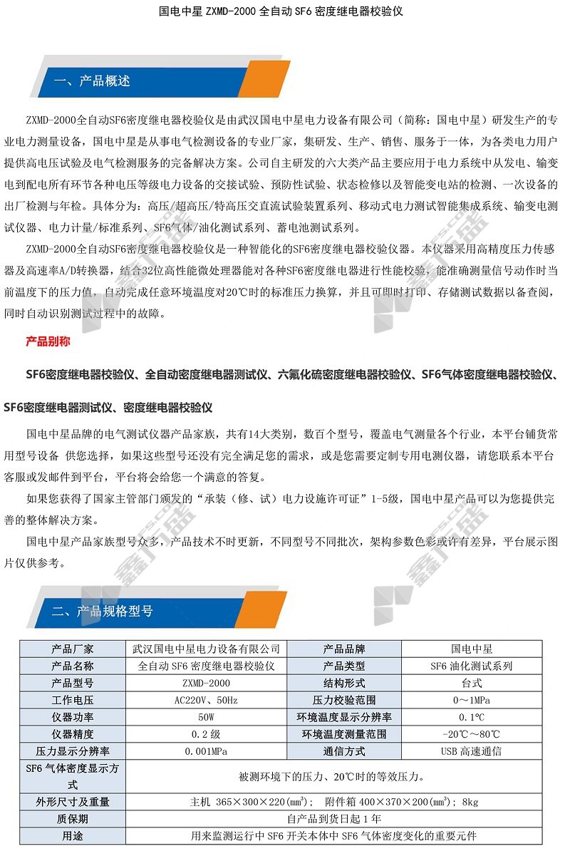 • 国电中星全自动SF6密度继电器校验仪 ZXMD-2000