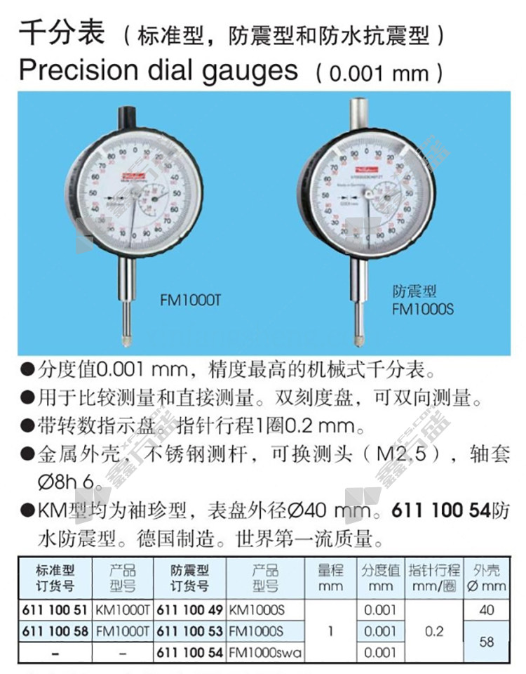 商品名称: 巴可 千分表 1mm\0.001mm/防震