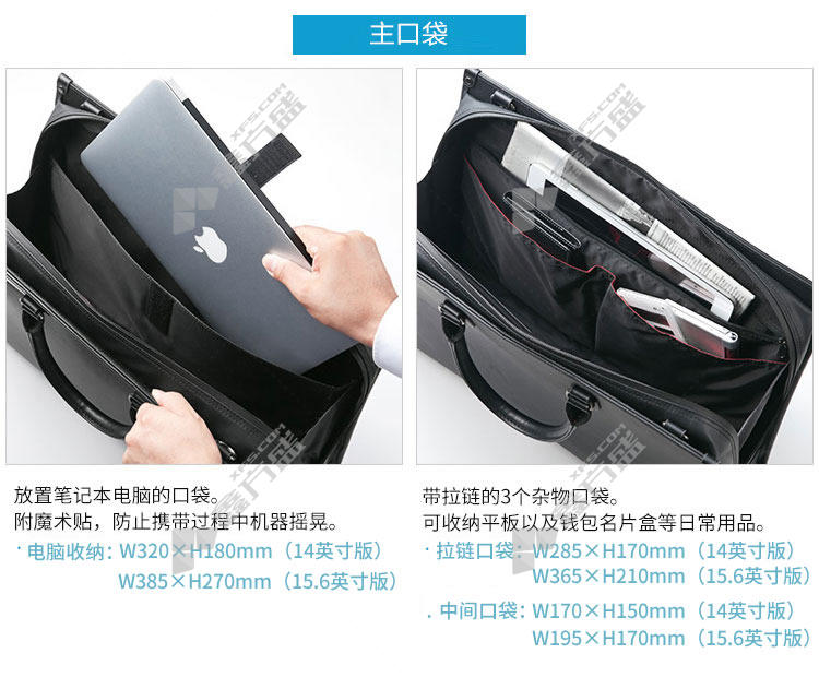 商品名称: 山业SANWA200-BAG067WP-S 多功能电脑包 黑色370mm*274mm*85mm