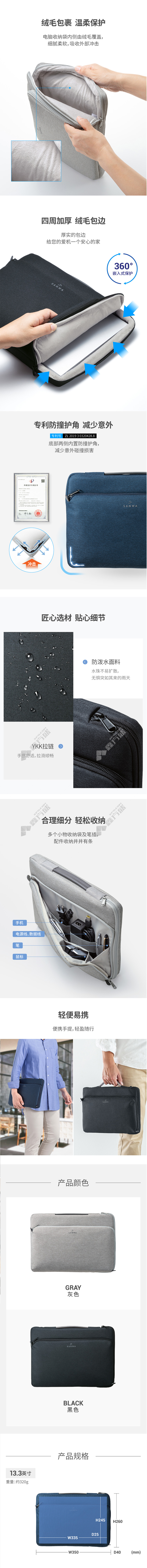 商品名称: 山业SANWAIN-CAC1BK 13.3英寸笔记本内胆包 浅灰 IN-CAC1GY 聚酯纤维