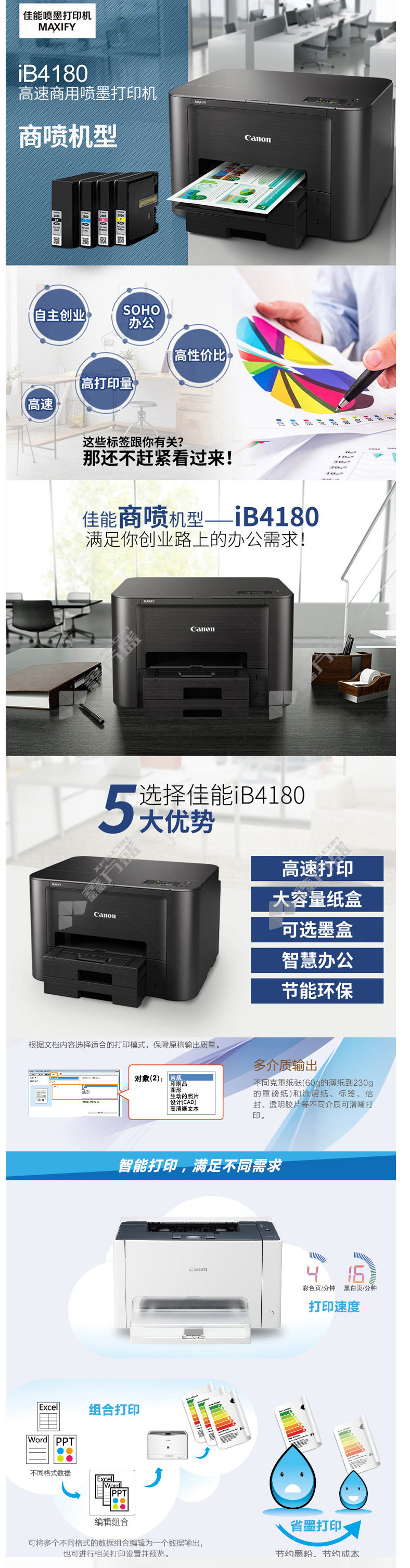 商品名称: 佳能IB4180 喷墨单功能打印机 iB4180 A4