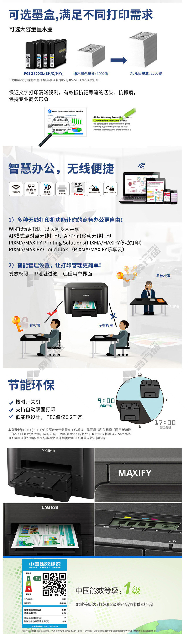 彩色喷墨打印机打印速度:黑白24ipm、彩色15.5ipm