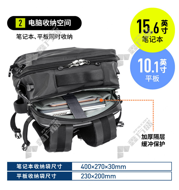 商品名称: 山业SANWABAG-BPC3BK 多功能双肩电脑包 黑色 15.6英寸