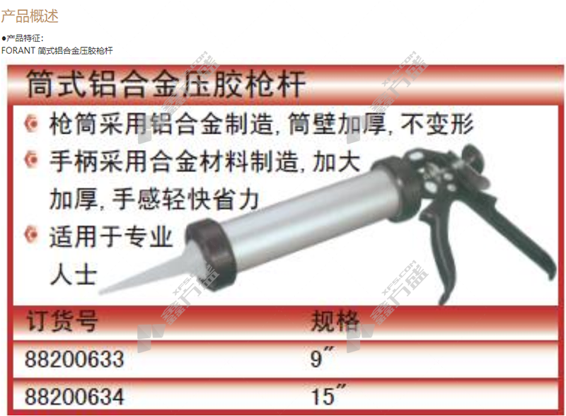 商品名称: 泛特 简式铝合金压胶枪杆 15寸