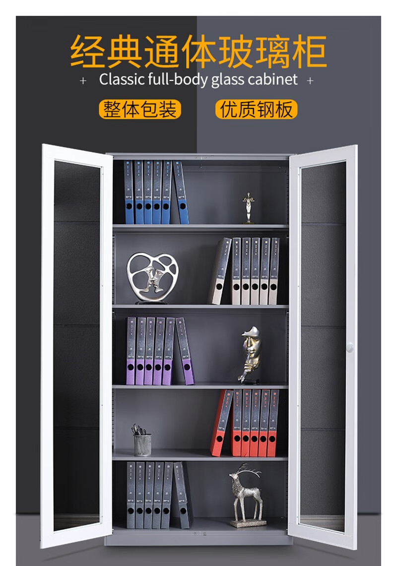 首页 首页 > 企诺 铁皮柜 通体玻璃柜文件柜 900*400*1850mm 灰白色