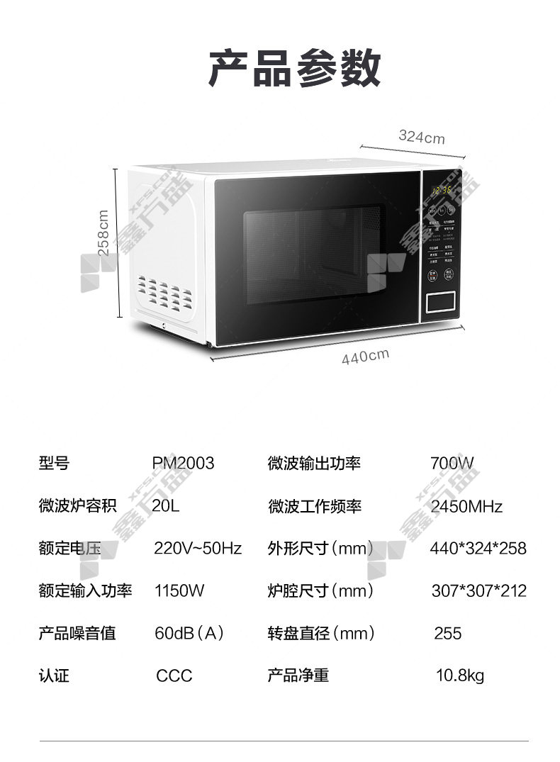 商品名称: 美的 PM2003 微波炉 700W 20L 黑色 PM2003