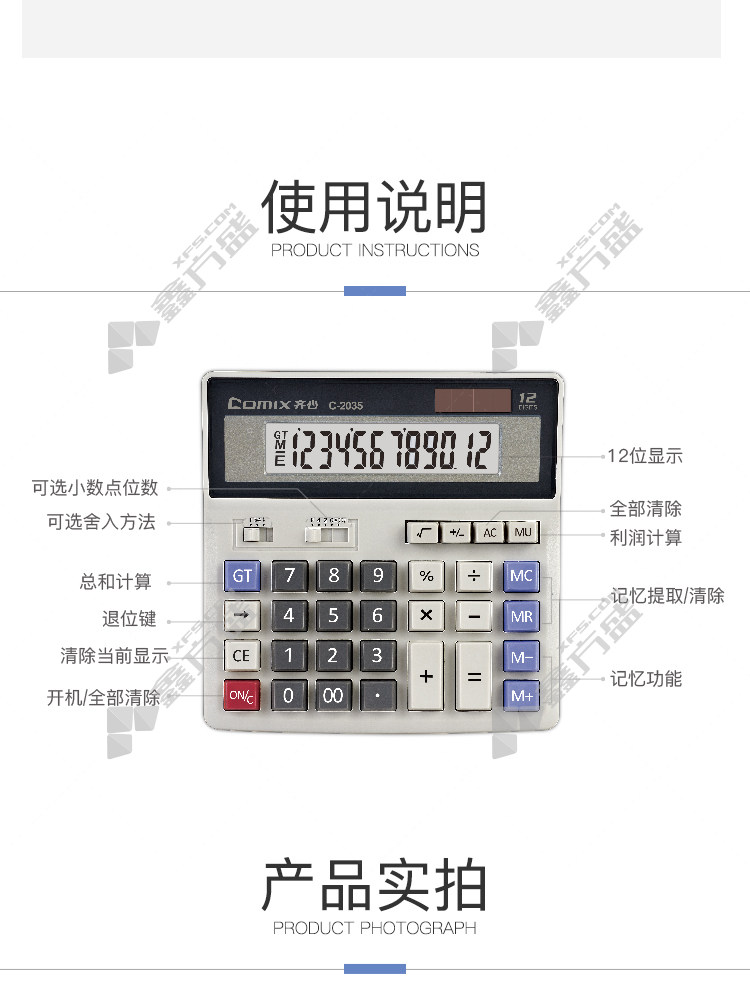 商品名称: 齐心 C-2035 计算器 12位 不支持语音功能 浅灰 C-2035