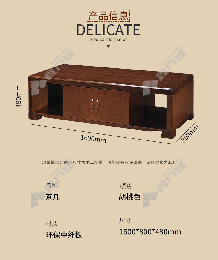 规格: 木制/胡桃色/1600*800*480mm