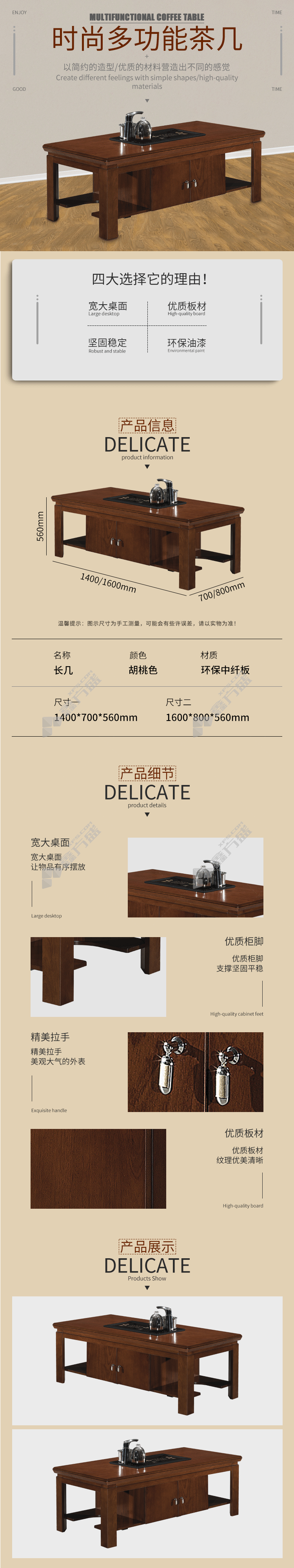 商品名称: 企诺 多功能茶几木质茶桌会客茶桌 木制/如图色/1400*700*560mm