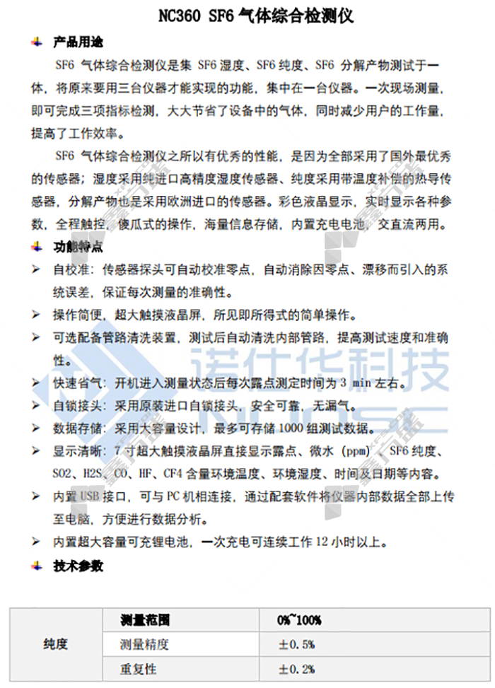 商品名称: 诺仕华科技 SF6气体综合测试仪 0%~100% NC360