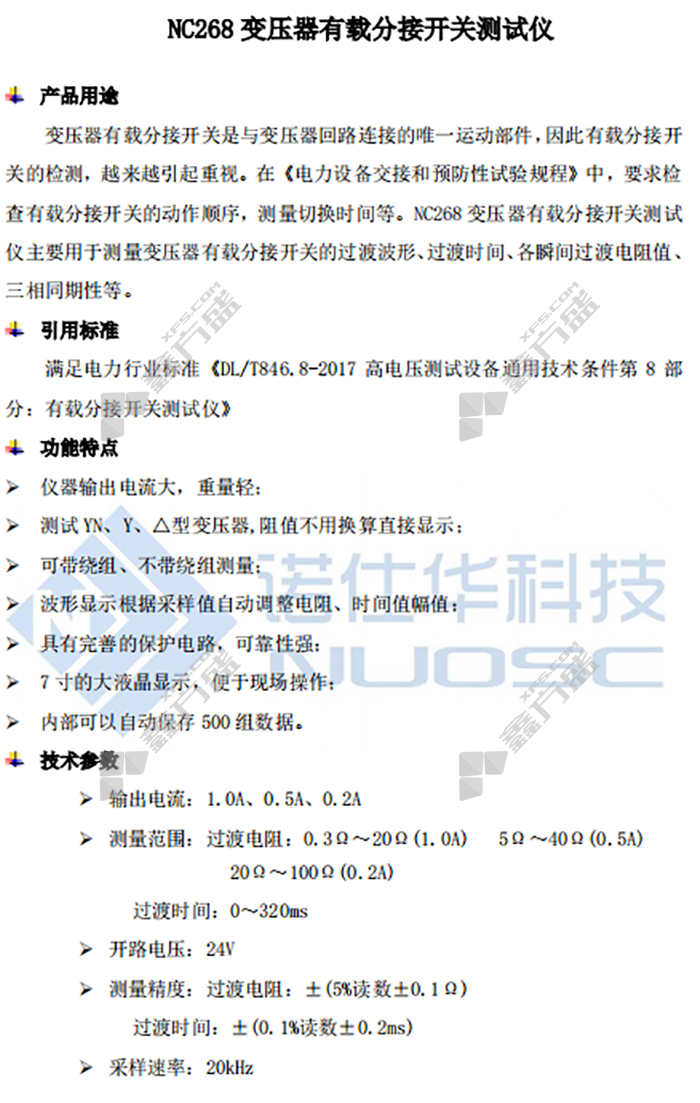 商品名称: 诺仕华科技 变压器有载分接开关测试仪 NC268