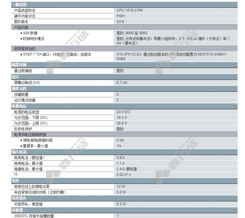 商品名称: 西门子 S7-1500F CPU模块 6ES7513-1FL02-0AB0