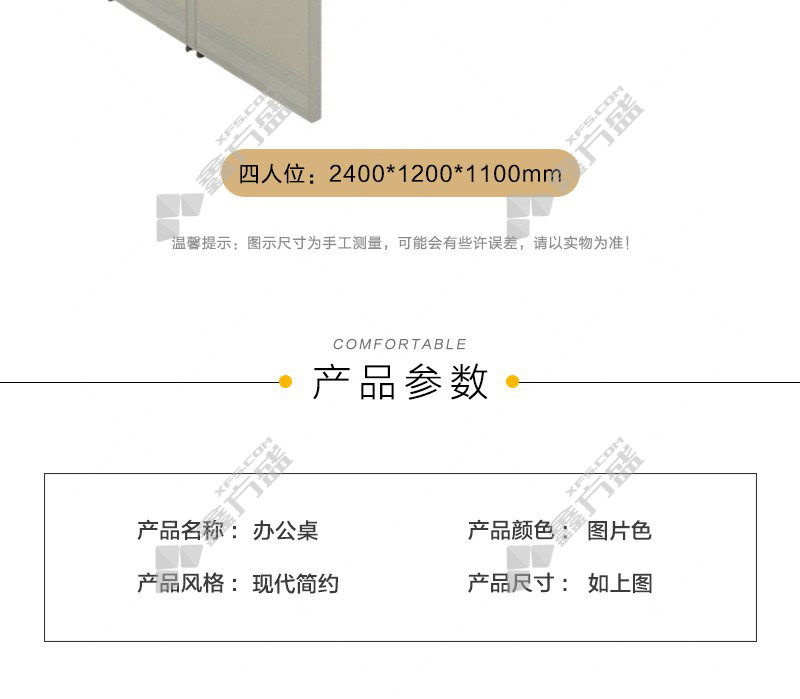商品名称: 企诺 屏风卡位四人位现代简约电脑桌 2400*1200*1100mm 原木色+白色