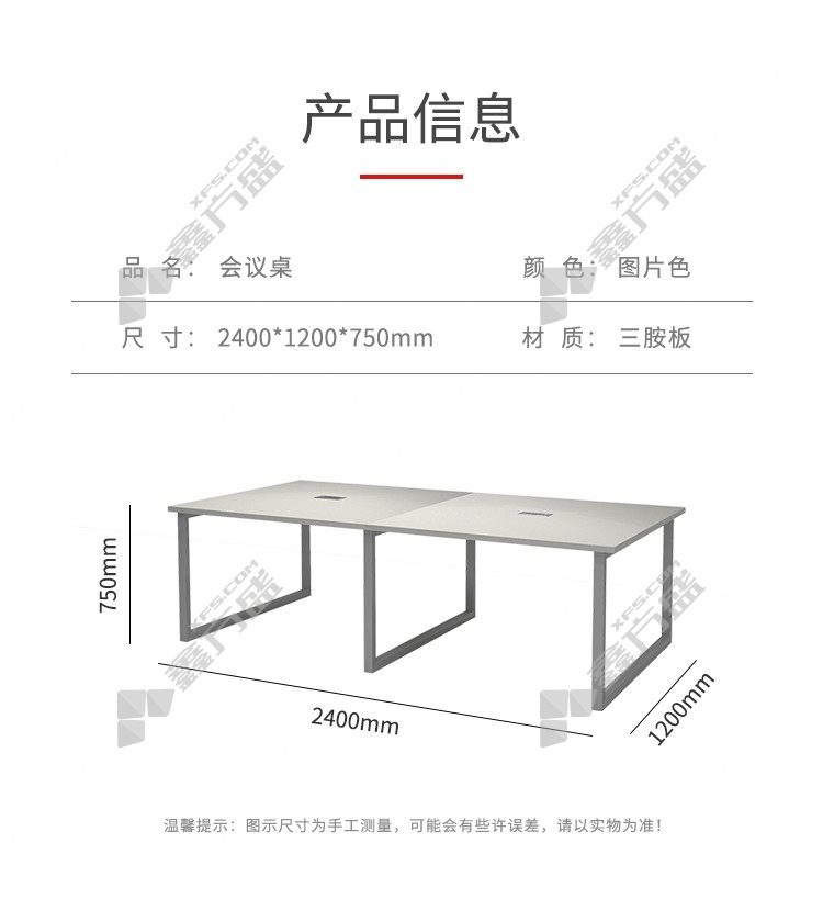 商品名称: 企诺 办公会议桌长条桌 2400*1200*750mm 白色