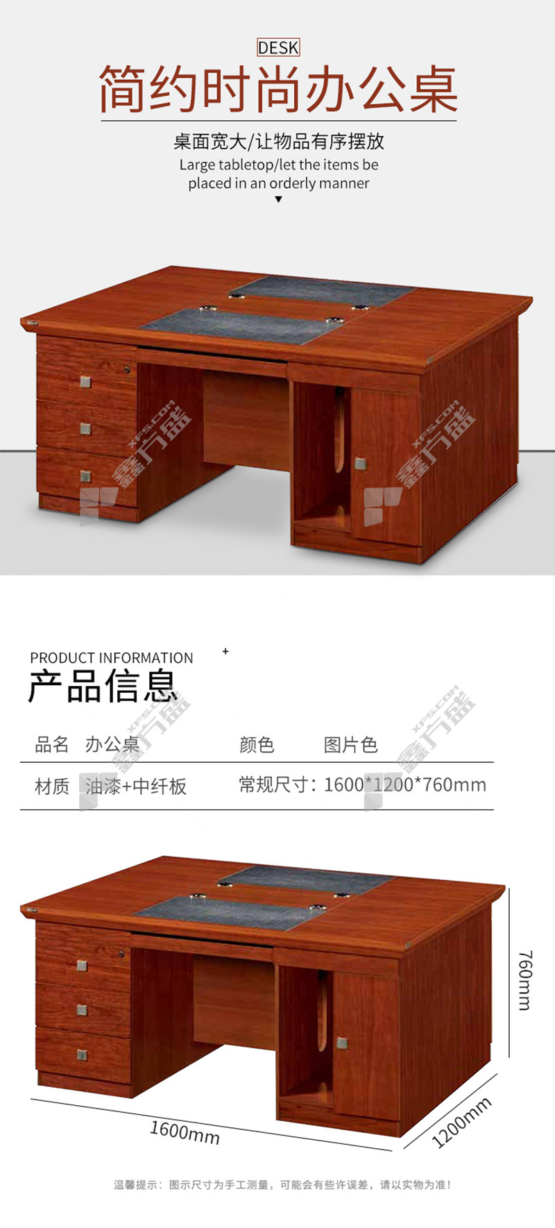 企诺 老板桌班台油漆桌 1800*900*760mm 胡桃木色