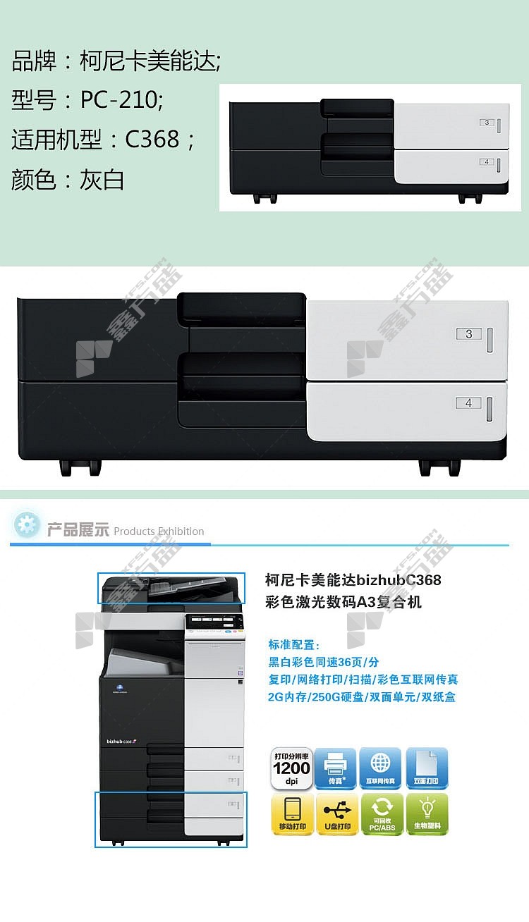 商品名称: 柯尼卡美能达 PC-210 双纸盒 复印机选配件 PC-210