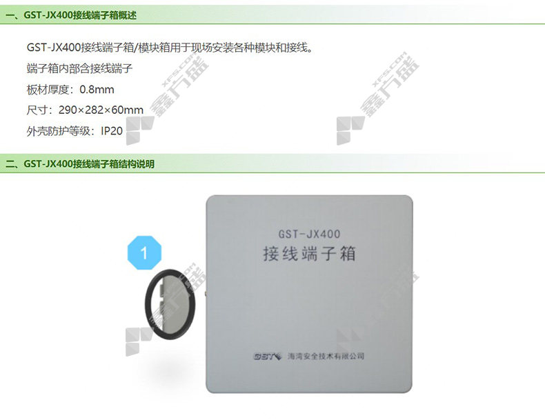 商品名称: 海湾 接线端子箱 GST-JX400 290*282*60mm