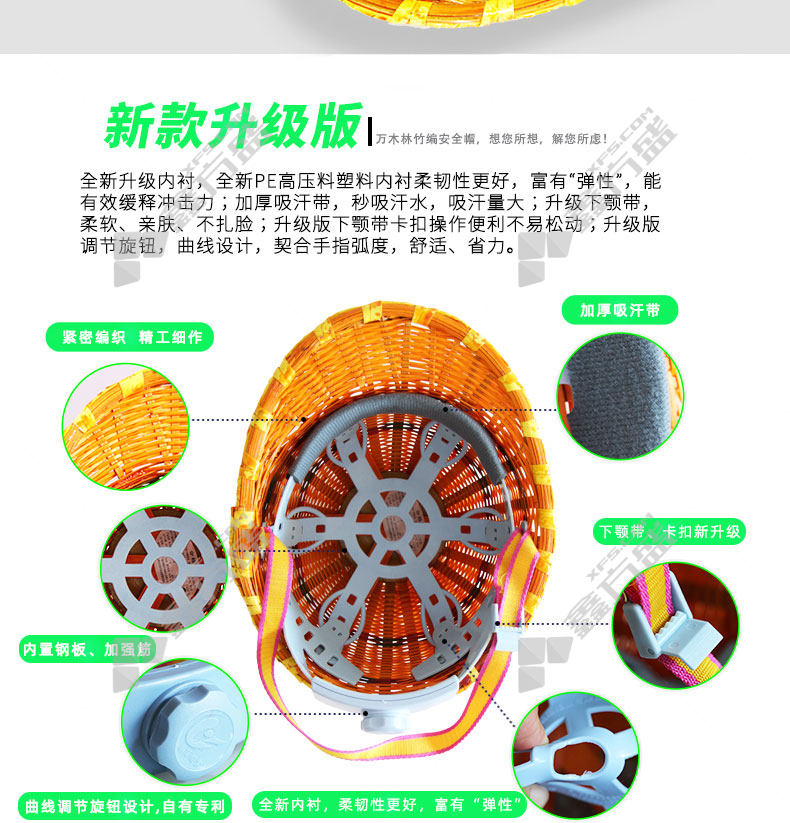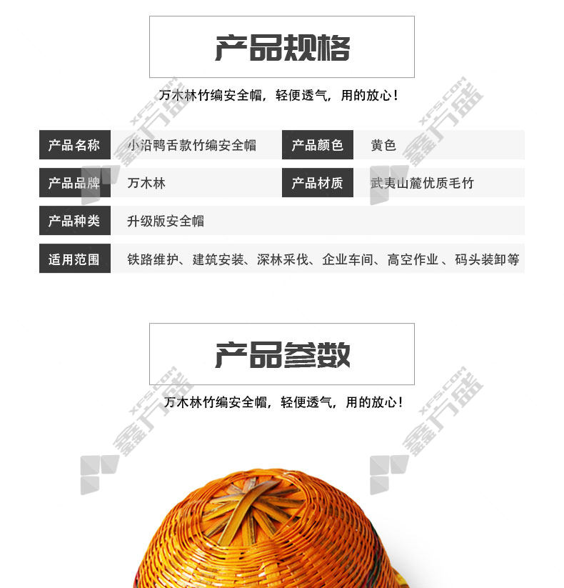 商品名称: 万木林 手工竹编透气遮阳小沿安全帽 zyx-3/有钢板有内衬 黄色