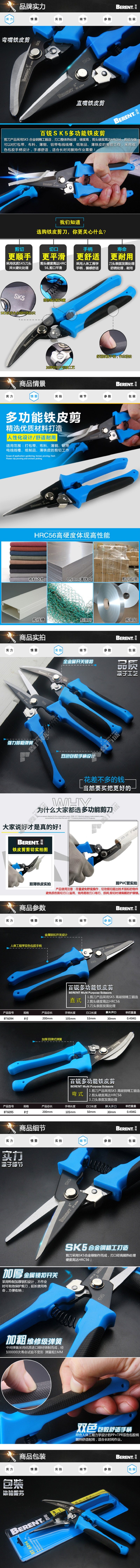 商品名称: 百锐 直式多功能剪刀 200mm(8寸) 蓝色+黑色 BT6094