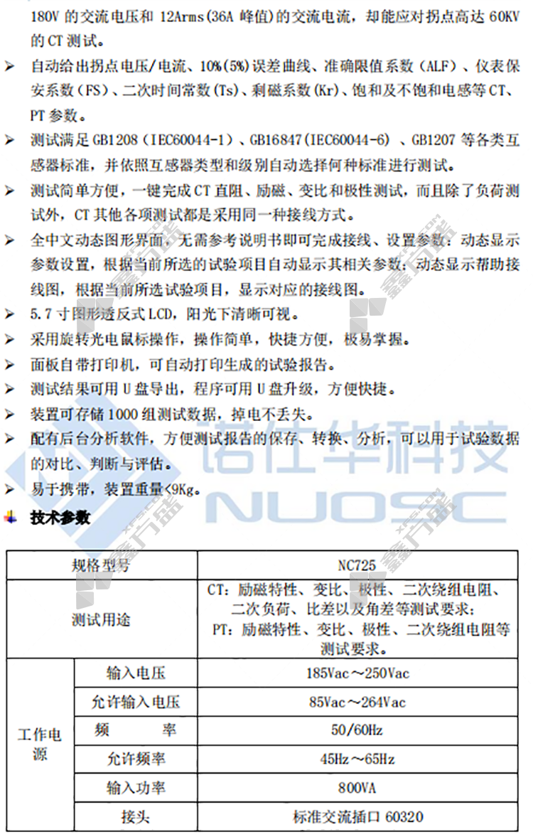 诺仕华科技 便携式互感器综合特性测试仪 变频 NC725