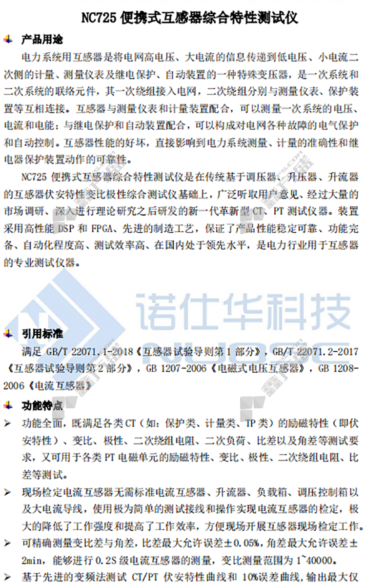 首页 首页 > 诺仕华科技 便携式互感器综合特性测试仪 变频 NC725