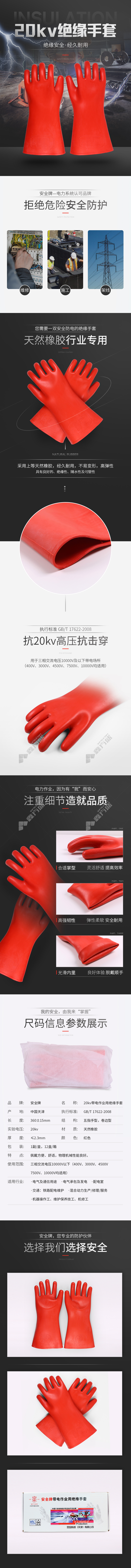 商品名称: 安全牌 20KV高压防触电橡胶手套 均码 红色