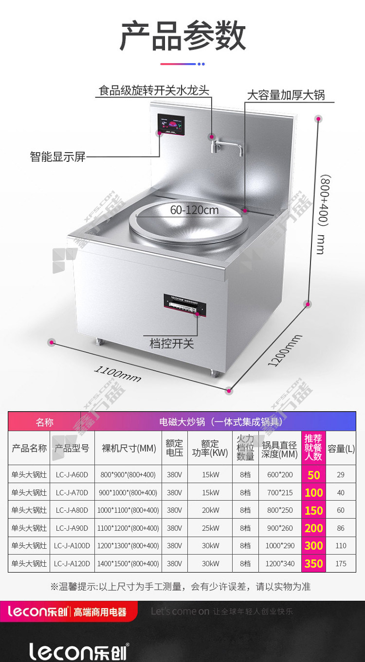 商品名称: 乐创 商用电磁单头大锅灶锅径900 LC-J-A90D 380V 25KW LC-J-A90D