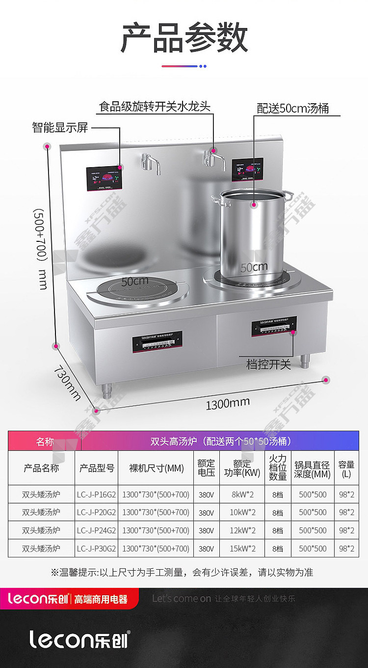 商品名称: 乐创 商用电磁双头矮汤灶LC-J-P16G2 380V 8KW*2 LC-J-P16G2