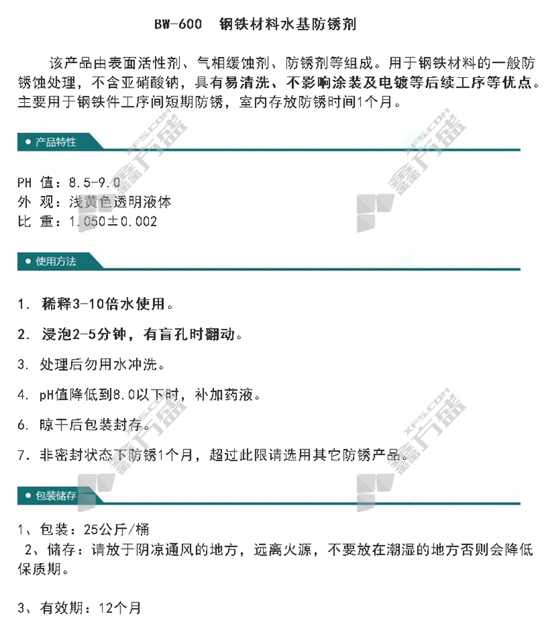 商品名称: 爱尔斯姆 钢铁材料水基防锈剂 BW-600 25kg