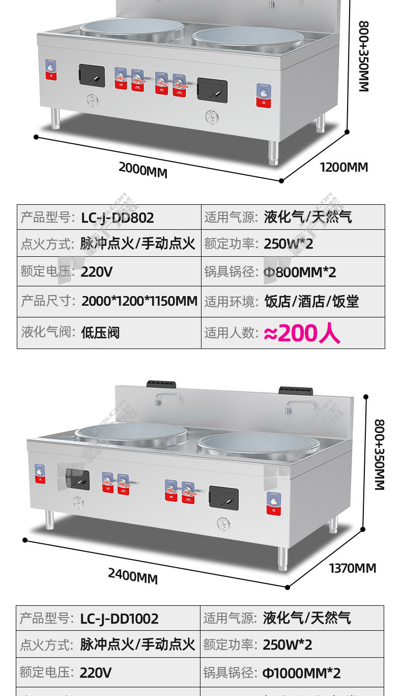 乐创 商用燃气双头大锅灶锅径1000 LC-J-DD1002 220V 250W*2 LC-J-DD1002