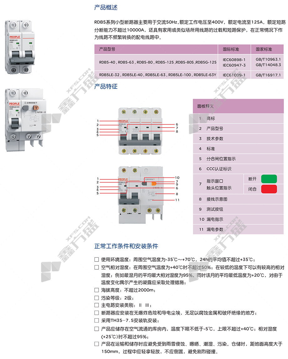 商品名称: 人民电器 小型断路器RDB5-63 1P RDB5-63 D50 1P(MX AC220V)