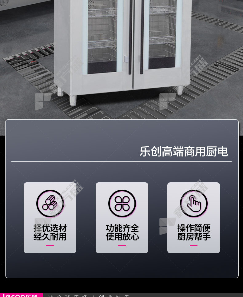 商品名称: 乐创 商用消毒柜双门智能电脑款LC-J-XZB720 电压功率220V/4.4Kw
