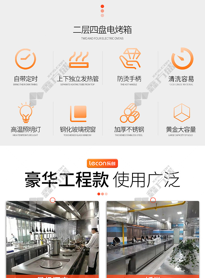 乐创 商用电烤箱二层二盘LC-J-KX202 电压:220V/380V功率:6.4KW容量:56L*2