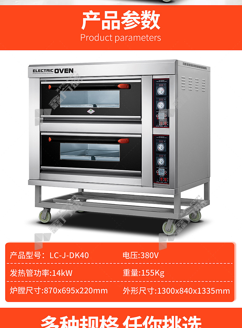 乐创 商用烤箱二层四盘旋钮式LC-J-DK40 电压380V功率14KW重量155KG