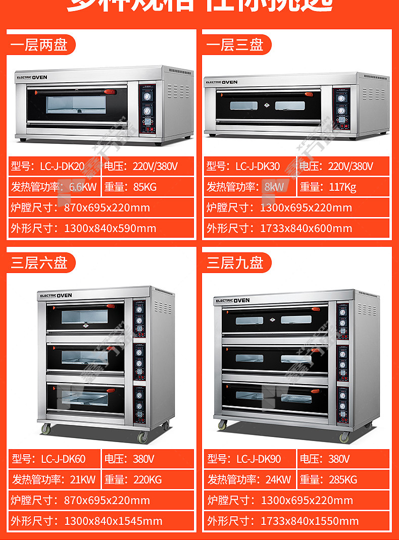 商品名称: 乐创 商用烤箱三层六盘旋钮式LC-J-DK60 电压380V功率21KW重量220KG